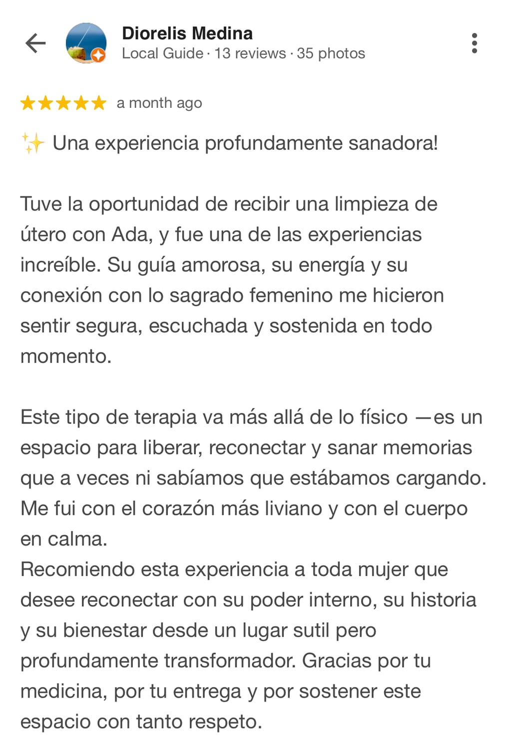 La sesión es principalmente energética y terapéutica. Trabajo con técnicas de medicina energética y acompañamiento consciente para liberar memorias emocionales y energéticas almacenadas en el campo uterino.